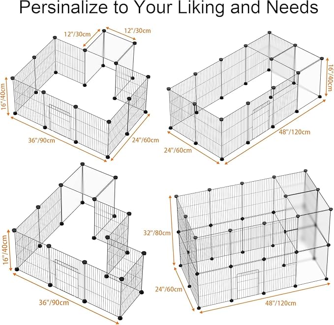 - Flexible DIY: They can be flexibly built into various shapes, you can change its shape according to your needs or room layout, such as closed cage or open fence, rectangle or L shape. Suitable for all kinds of small animals, it is an ideal habitat for guinea pigs, bunnies, kittens or puppies