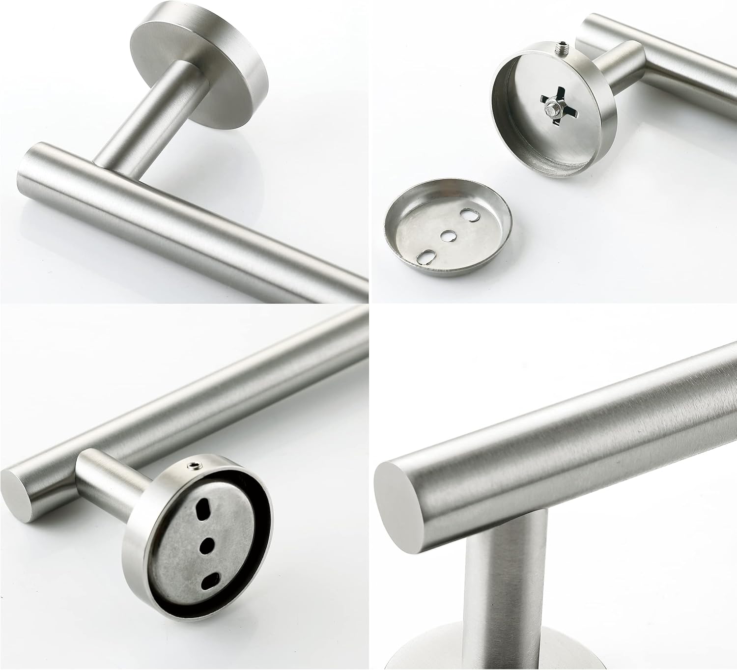 - [RUST FREE]: This towel rack is constructed of Type 304 premium grade stainless steel, with added 18/10 Chromium/Nickel content to protect against corrosion & rust. 4 protection layers are added on 304 stainless steel to make the towel rod More durable and More Anti-Rust.