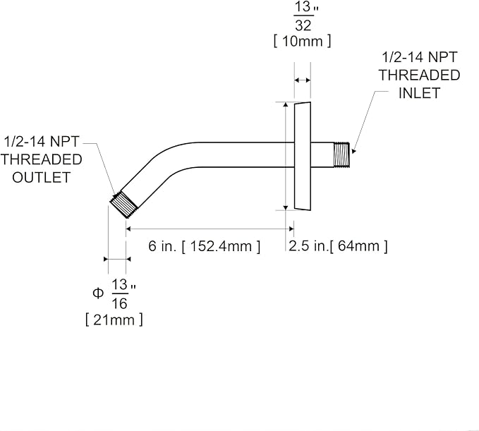 - [Installation and Specifications] Detailed instructions ensure worry-free installation. The product is 6 in long, the thread specification of inlet is 1/2"-14 NPT, suitable for standard shower pipes. The thread specification of outlet is 1/2"-14 NPT (compatible with 1/2" IPS thread), suitable for sprinkles of standard interface.