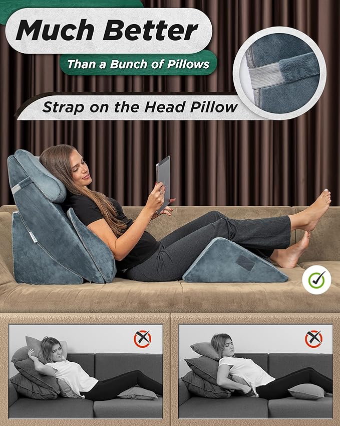 - Supportive Positions for Relaxed, Upright Rest – Crafted to fit into your daily unwind routine, this versatile wedge system lets you customize your favorite position—whether you prefer to sit upright, recline, or elevate your legs. The naturally elevated posture helps reduce pressure on your neck, back, and hips so you can settle into a more comfortable, supported rest. The included hot/cold pack adds a touch of warm or cool comfort whenever you need it.