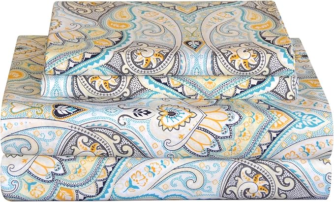 Pointehaven Bedding 4 Pieces King 100% Cotton Percale Sheets- Printed Bed Sheet & Pillowcase Sets- Soft Cotton Bed Sheets Set- Fits Mattress 19 inches Deep Pocket (King, Cypress)