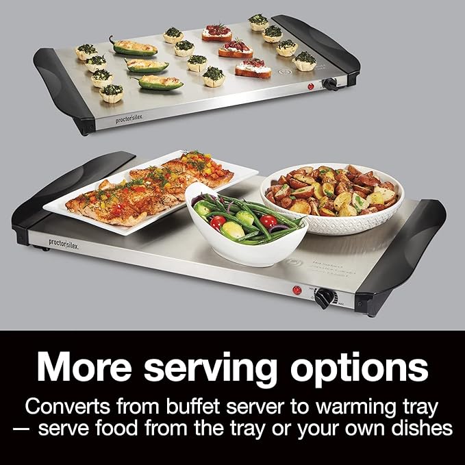 - Buffet server and food warming tray in one. Serve all your party food at the perfect temperature without monitoring or reheating in an oven