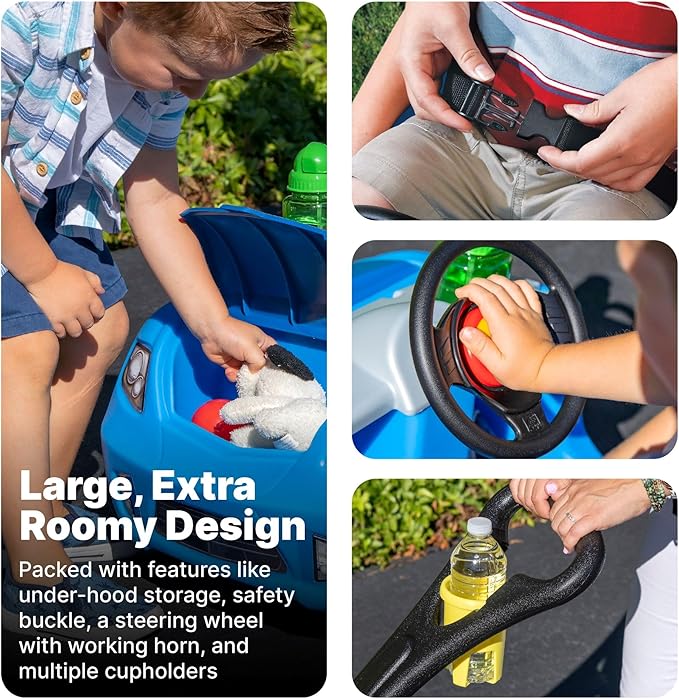 - Seats flip into a flat bed, seat or table.UNMATCHED DURABILITY: This toy for toddlers is made with durable, double-walled plastic construction with molded-in colors that won’t chip, fade, crack, or peel so it will last through generations. Plus, it’s low maintenance – just wipe down as needed.